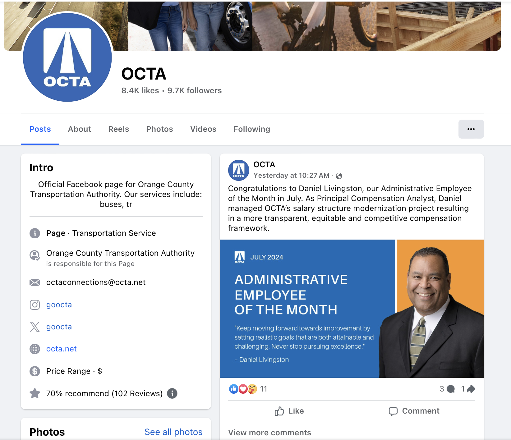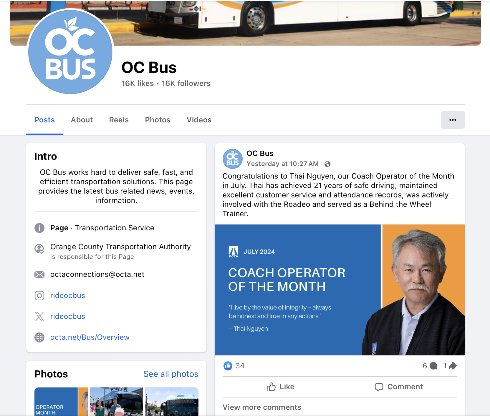 The program’s success contributed to OCTA being honored with the APTA Service Award, a national recognition of the agency’s dedication to safety and excellence.