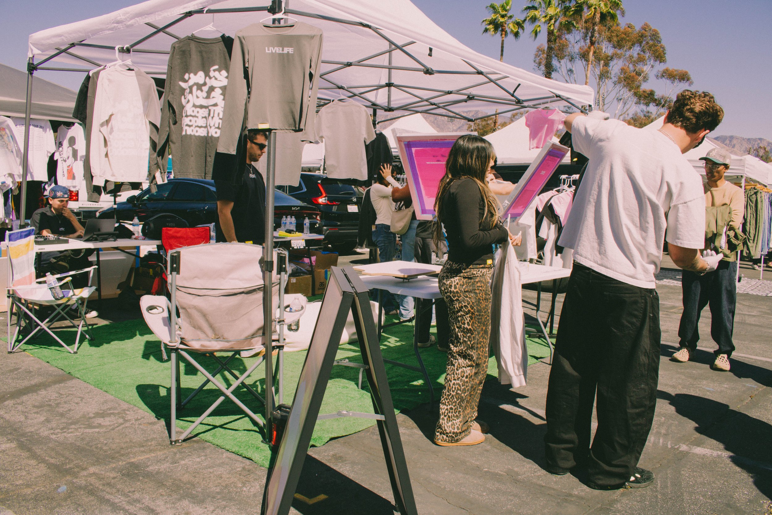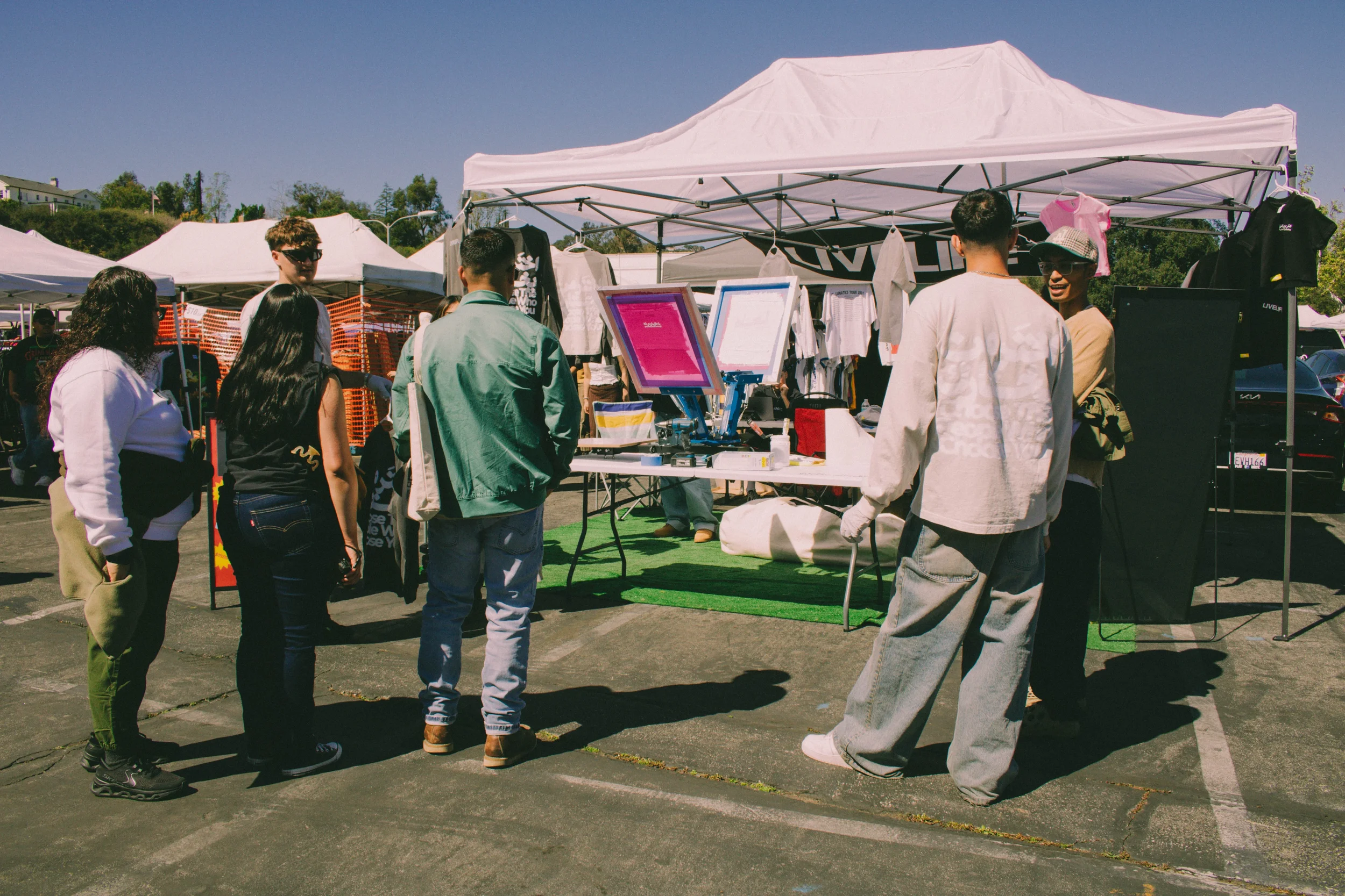 In May, we hosted our first pop-up booth at the Rosebowl Flea Market. A huge thank you to everyone who came out to support us and check out our booth. The event was filled with energy, creativity, and good vibes. It wasn’t just about selling merchandise. We wanted to offer an opportunity for people to experience screen printing firsthand. Our booth featured live screen printing, allowing visitors to interact with the process and create their own unique pieces using our designs.